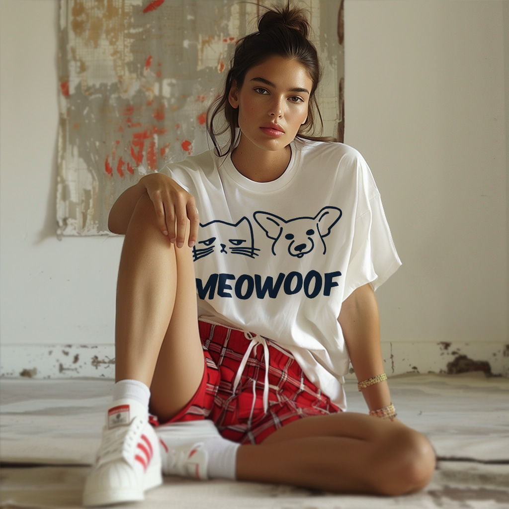 Meowoof T-Shirt is no ordinary piece of clothing. Its taped neck and shoulders, double-needle sleeve and bottom hems, and quarter-turned construction provide a retail fit for clothing that’s true to size. Funny Animal Heavy Cotton Tee is Designed and printed in California.