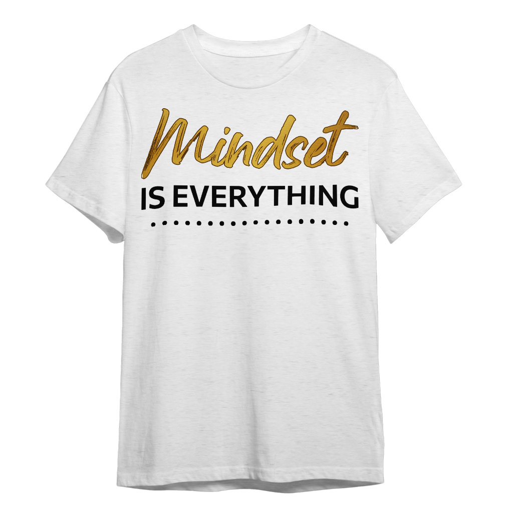 Mindset Is Everything T-Shirt is no ordinary piece of clothing. Its taped neck and shoulders, double-needle sleeve and bottom hems, and quarter-turned construction provide a retail fit for clothing that’s true to size. Inspirational Heavy Cotton Tee is Designed and printed in California.