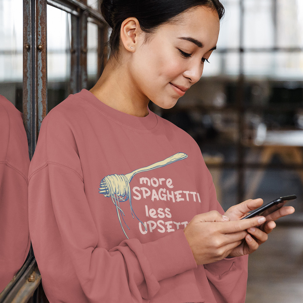 More Spaghetti Less Upsetti Cropped Long Sleeve Sweatshirt – Vintage Aesthetic Women’s Crop Top – Retro Graphic Long Sleeves Pullover