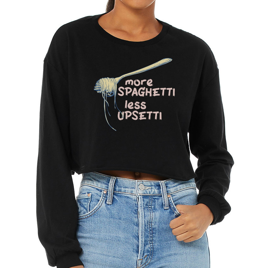 More Spaghetti Less Upsetti Cropped Long Sleeve Sweatshirt