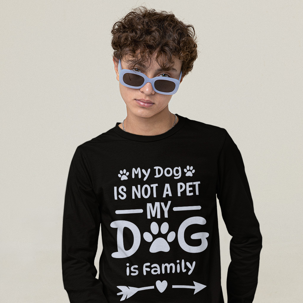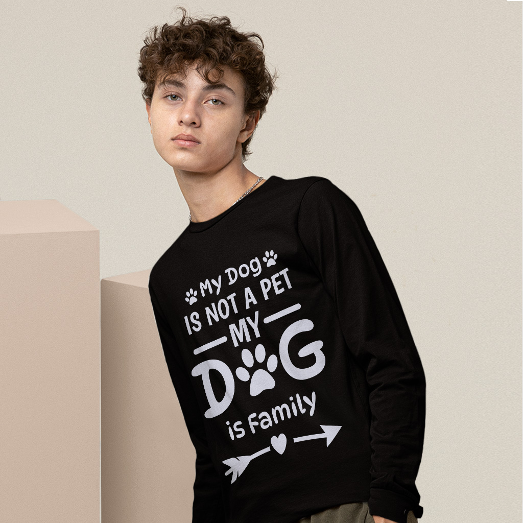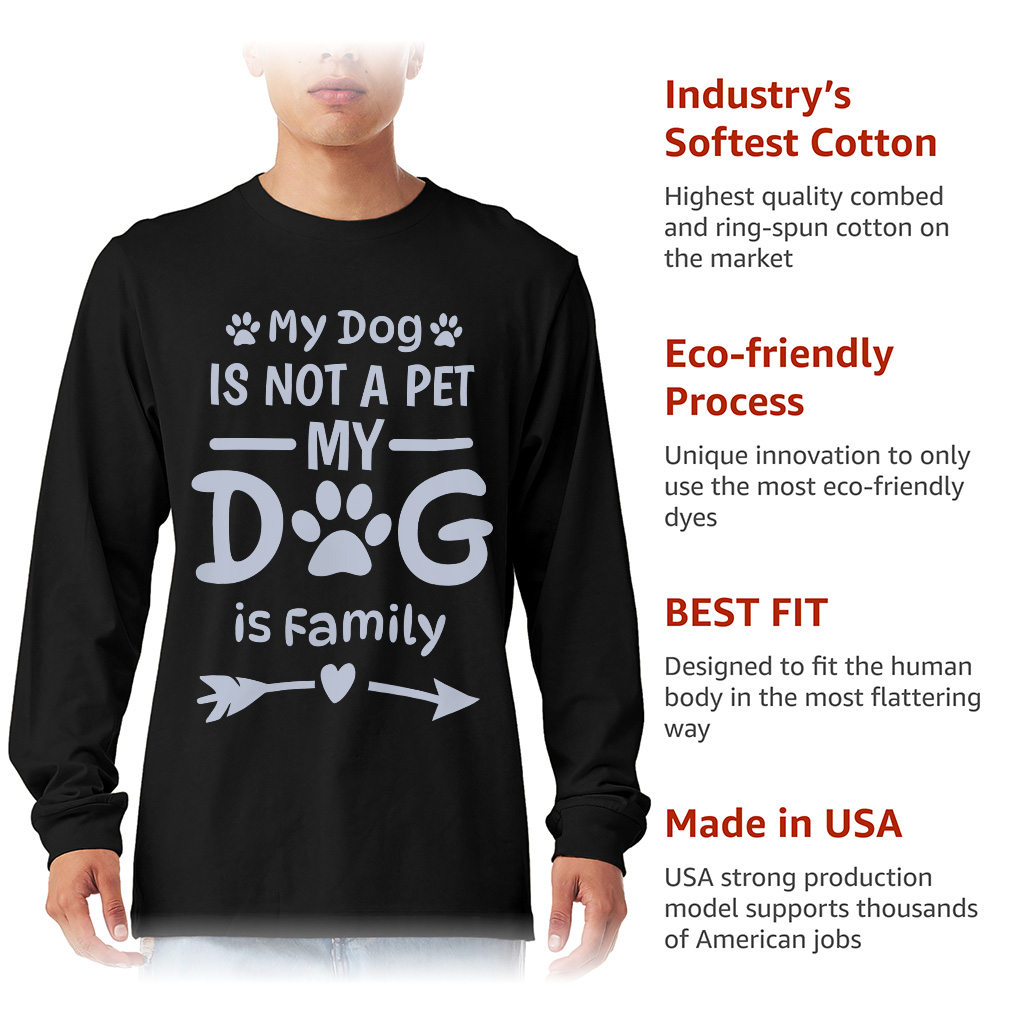 My Dog Is Not a Pet My Dog Is Family Long Sleeve T-Shirt is proudly made with 7x less water than average manufacturers, in recycle-friendly facilities that also guarantee zero sweatshop conditions. My Dog T-Shirt is designed and printed in California.