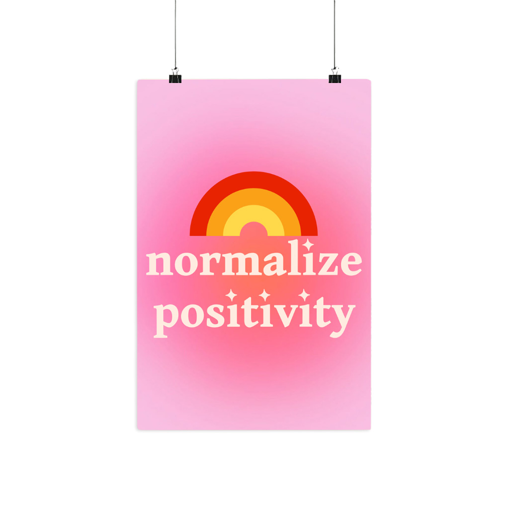 Elevate your space with Normalize Positivity Matte Poster! This unique wall art is made with pigmented archival inks, providing superior fade resistance and permanence to ensure a stunning graphic for years to come. Its matte finish adds modern appeal and a lightweight alternative to framed art. Whether you’re decorating an office, living room, café or gallery space, Positive Message Wall Art Print is sure to give your walls a one-of-a-kind touch that won’t go unnoticed. Make an eye-catching statement today with Affirmation Home Decor.