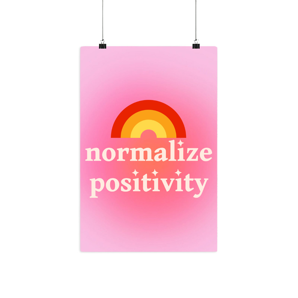 Elevate your space with Normalize Positivity Matte Poster! This unique wall art is made with pigmented archival inks, providing superior fade resistance and permanence to ensure a stunning graphic for years to come. Its matte finish adds modern appeal and a lightweight alternative to framed art. Whether you’re decorating an office, living room, café or gallery space, Positive Message Wall Art Print is sure to give your walls a one-of-a-kind touch that won’t go unnoticed. Make an eye-catching statement today with Affirmation Home Decor.