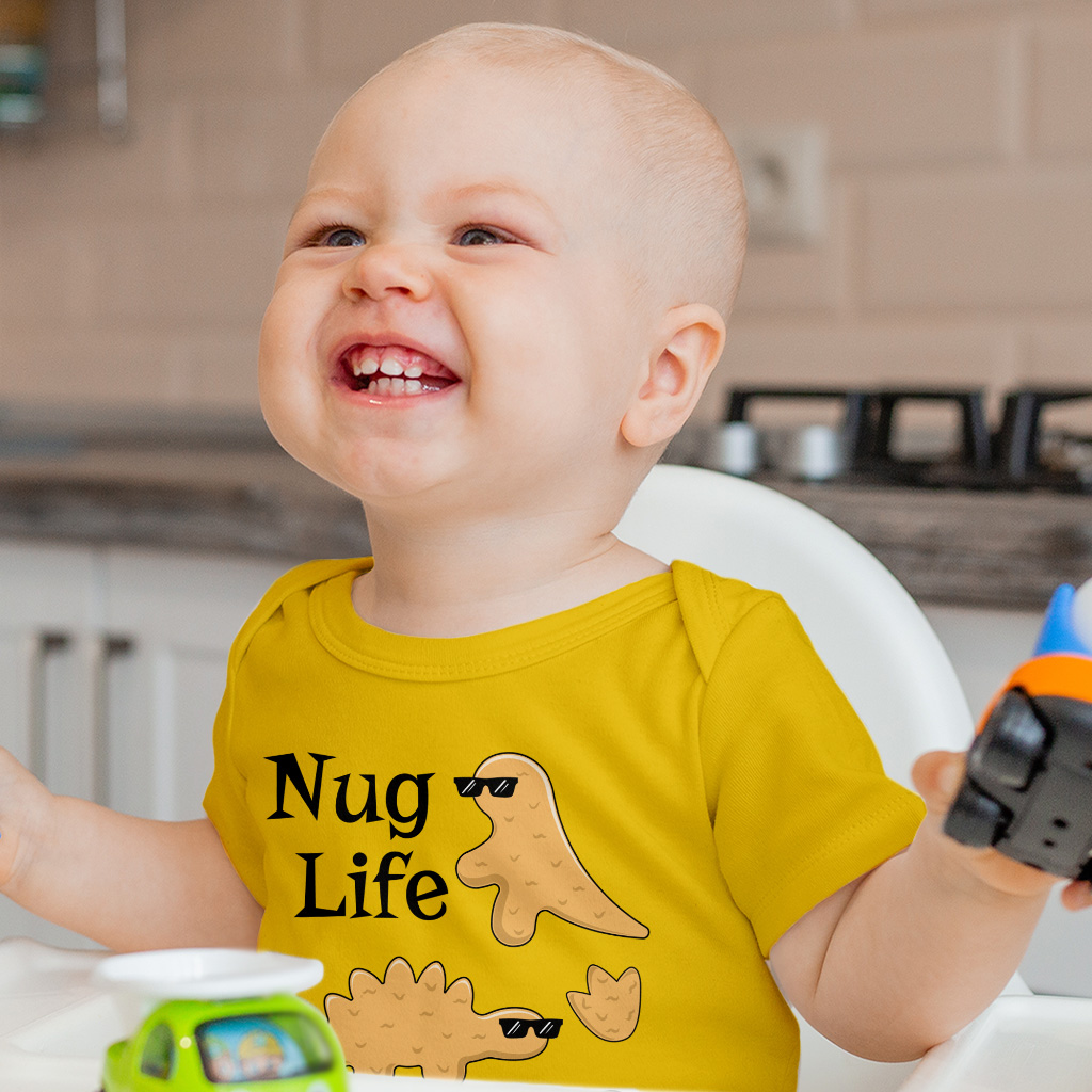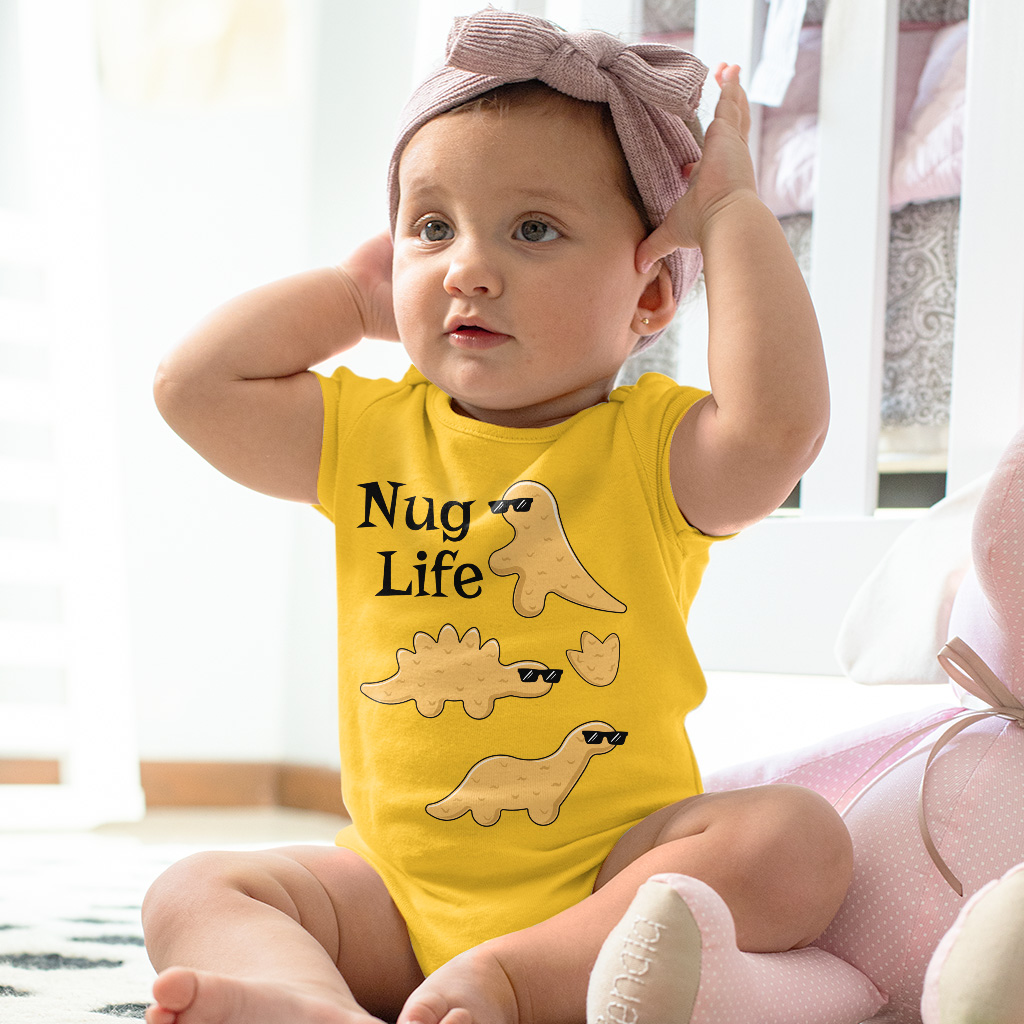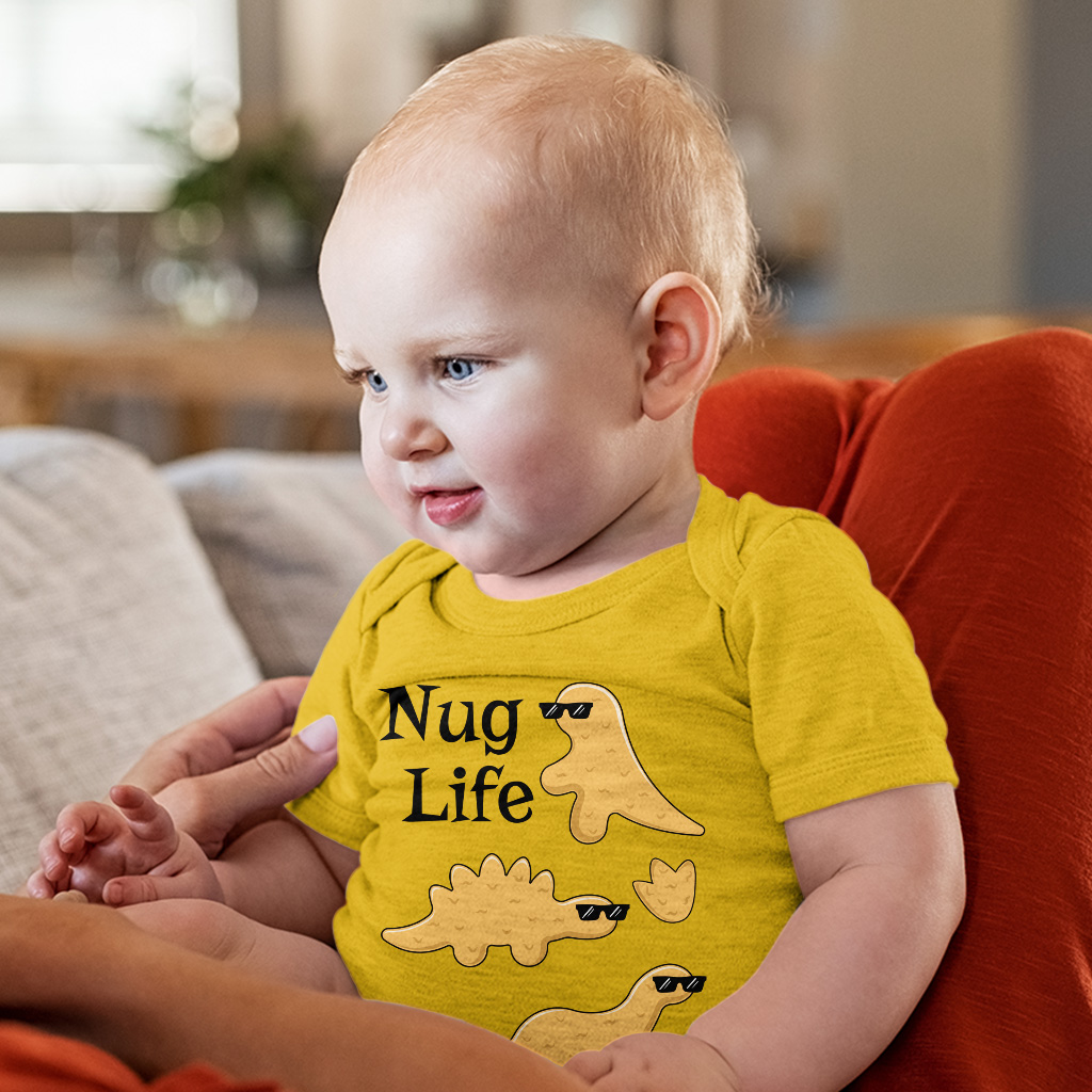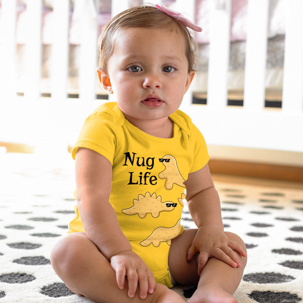 Cool Graphic Baby Bodysuit! Made from soft and stretchy jersey material, Dino Nugget Baby One-Piece is