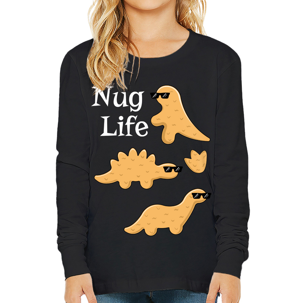 Nug Life Kids’ Long Sleeve T-Shirt – Dino Nugget T-Shirt for Kids – Cool Graphic Tee for Boys Girls