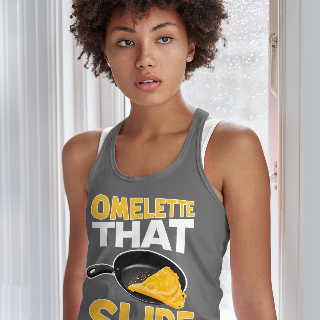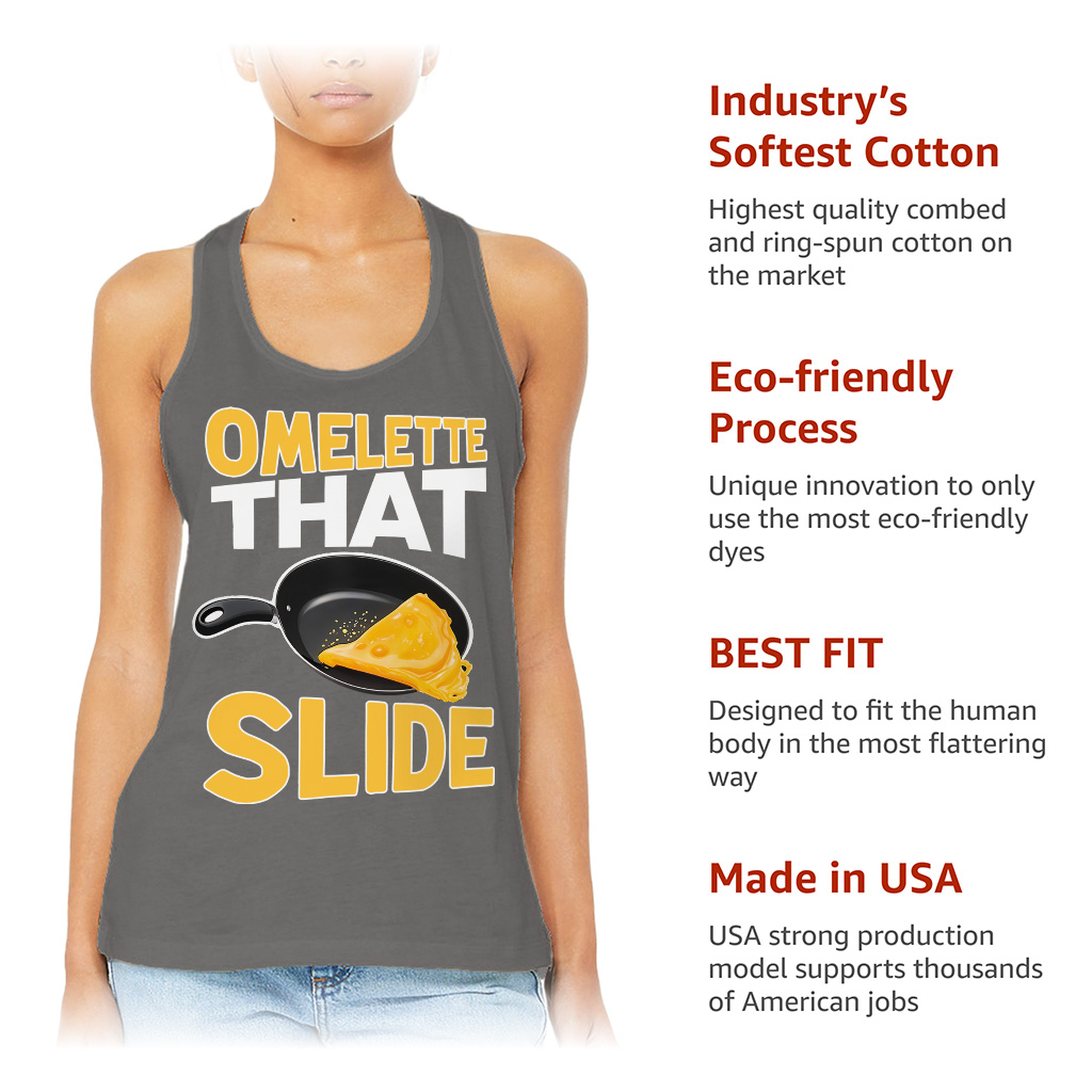 Omelette That Slide Racerback Tank is no ordinary piece of clothing. Its side-seamed detail and flatlock-finished hems provide a retail fit for clothing that’s true to size.