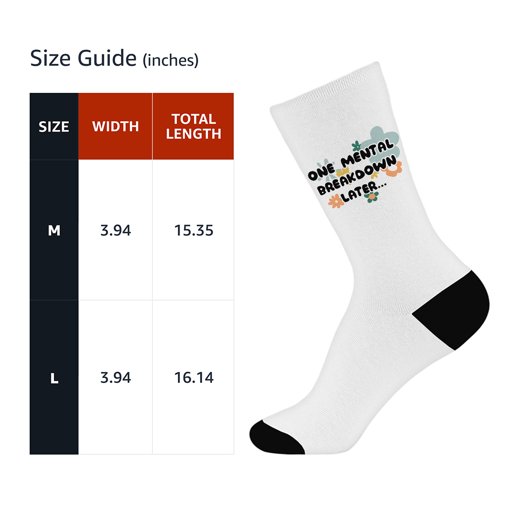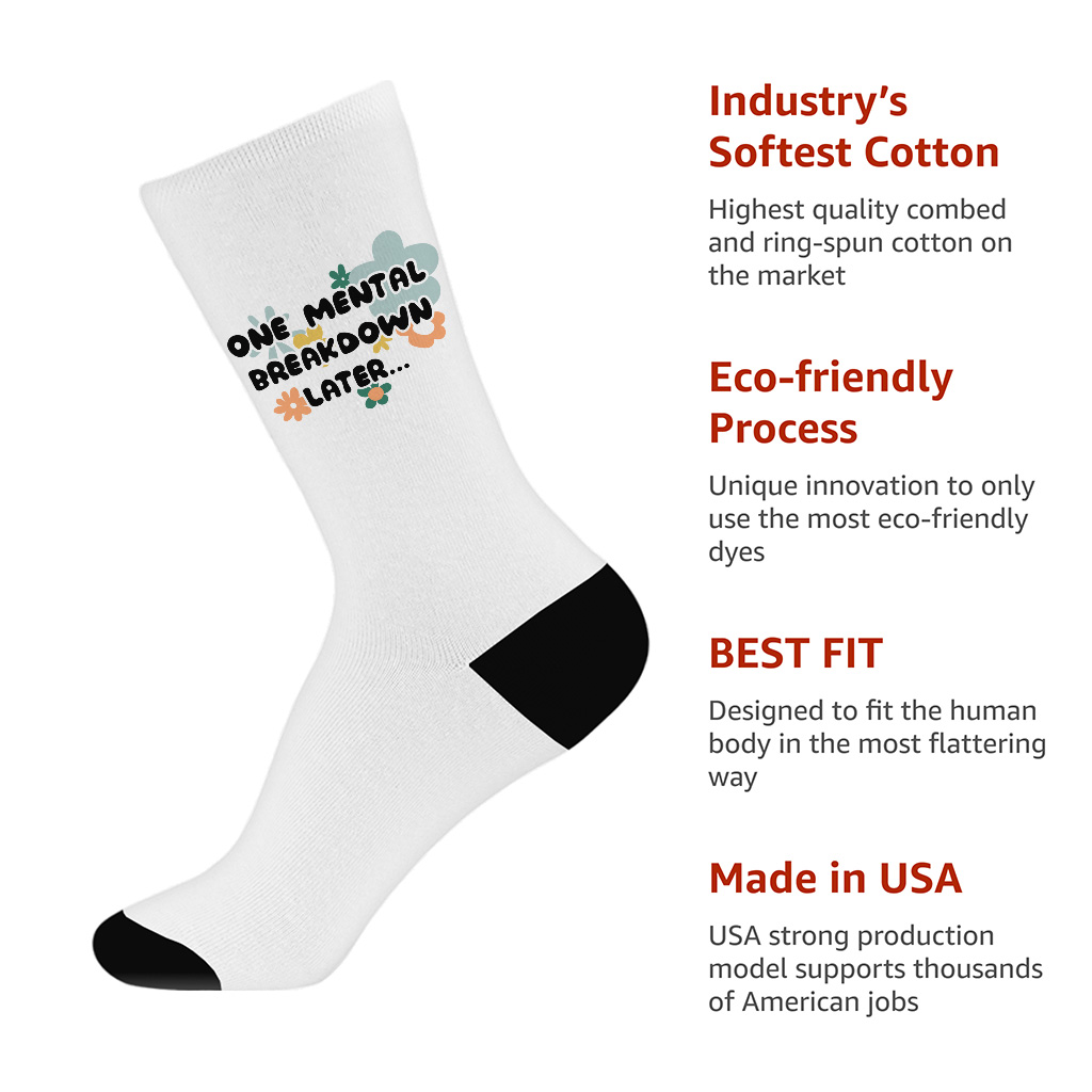 One Mental Breakdown Later Unisex Socks Looking for a way to add some personality to your everyday style? Check out Anxiety Crew Socks! With a ribbed tube and cushioned bottoms, our socks are sure to make a statement. Plus, they’re super comfortable, so you can wear them all day long….
