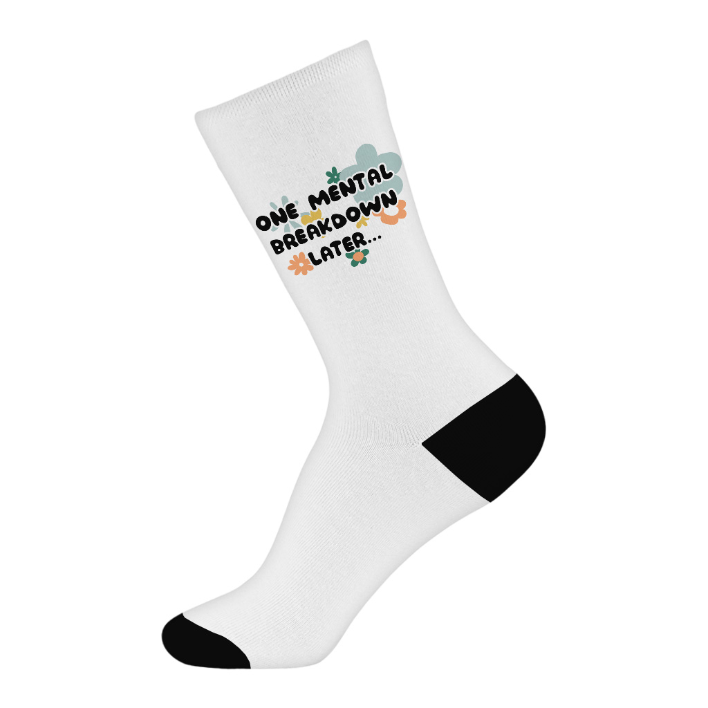 One Mental Breakdown Later Unisex Socks – Funny Therapist Socks – Anxiety Crew Socks