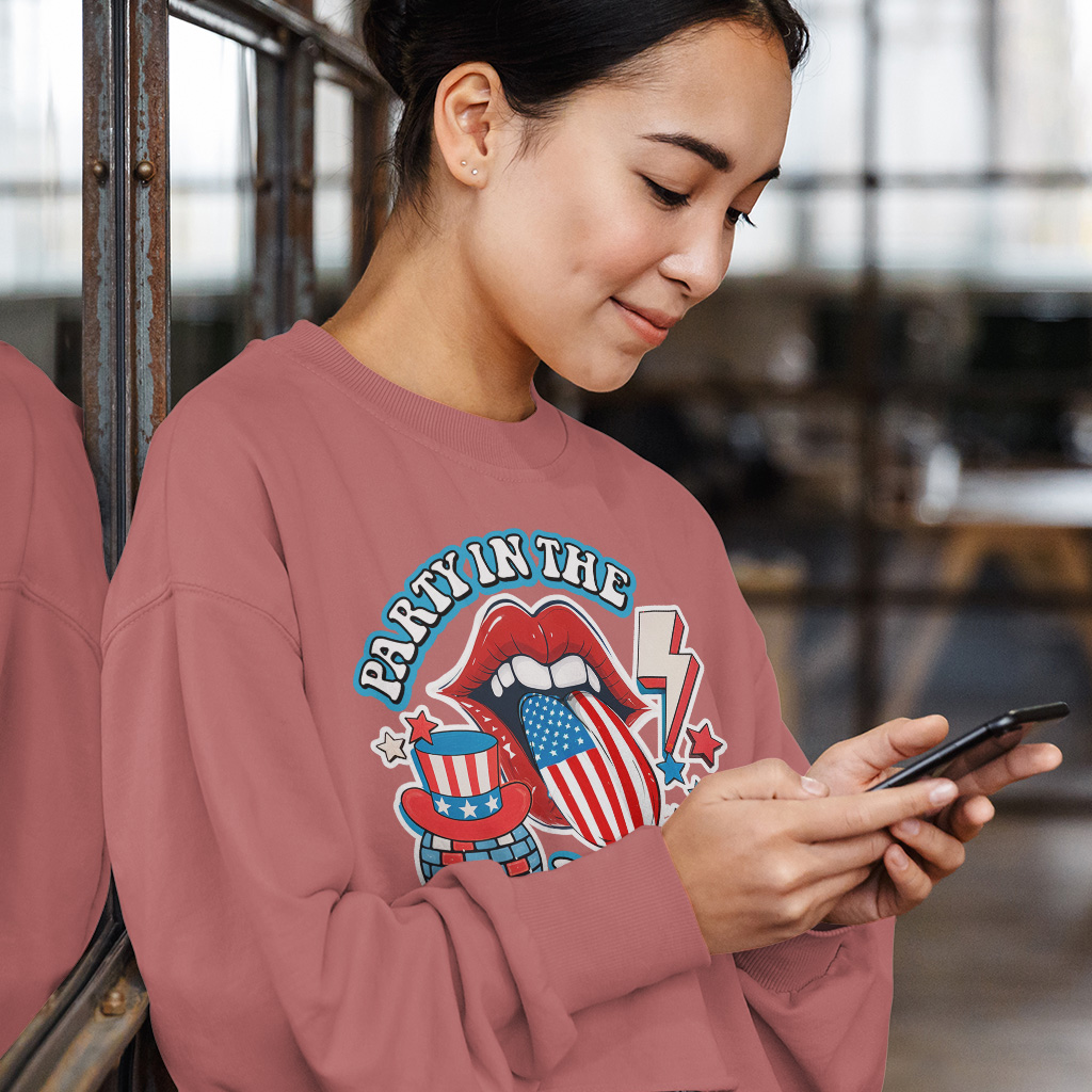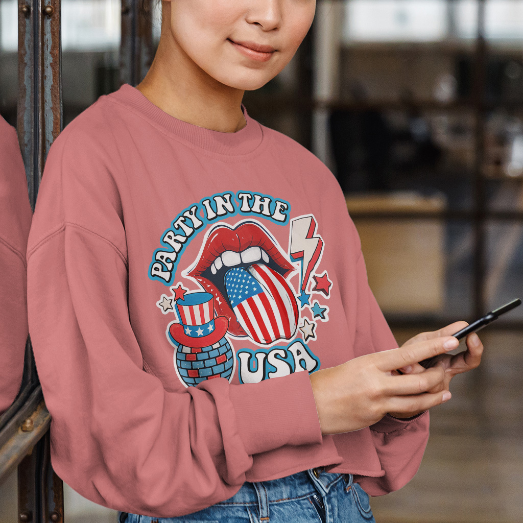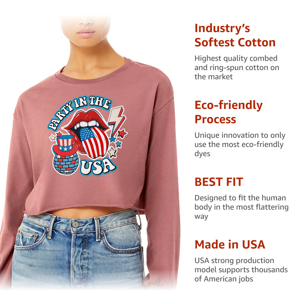Party in The USA Cropped Long Sleeve Sweatshirt
