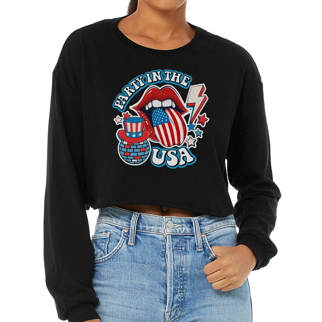Party in The USA Cropped Long Sleeve Sweatshirt