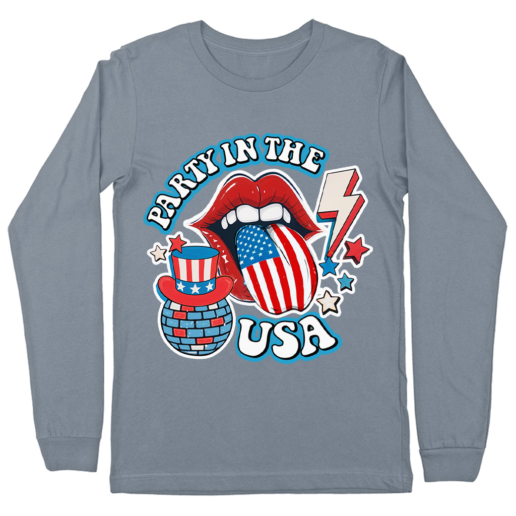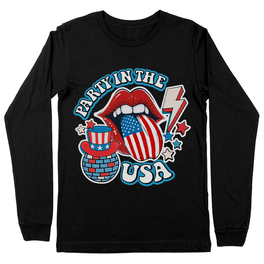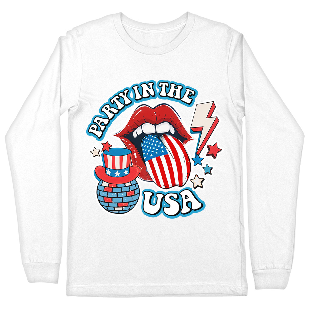Party in The USA Long Sleeve T-Shirt – Retro Graphic T-Shirt – Trendy Usa Basic Tee
