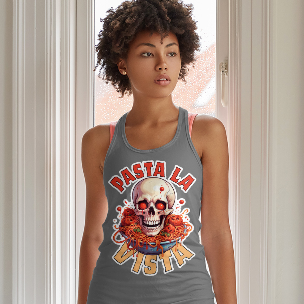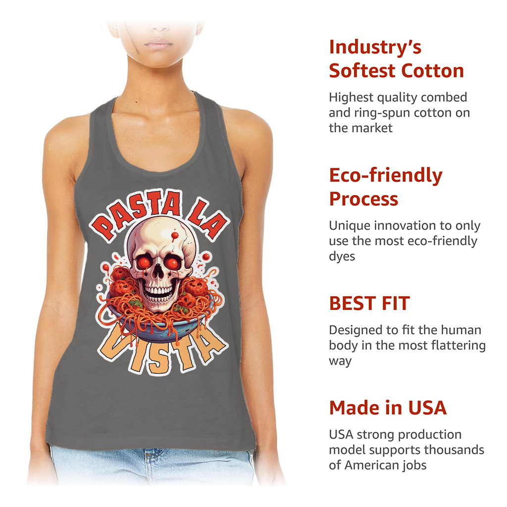 Pasta La Vista Racerback Tank is no ordinary piece of clothing. Its side-seamed detail and flatlock-finished hems provide a retail fit for clothing that’s true to size.