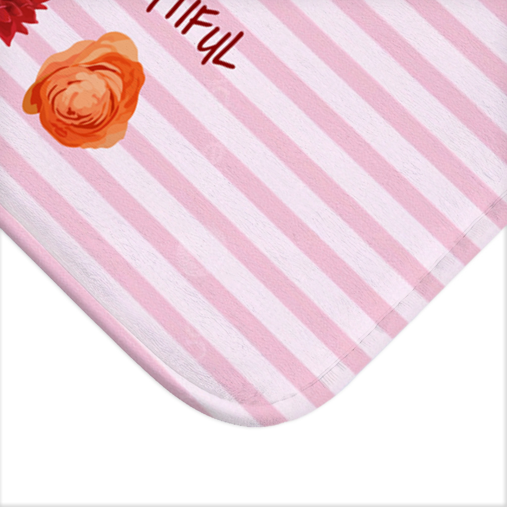Peace and Kindness Are Always Beautiful Bath Mat features an anti-slip backing that ensures it stays firmly in place. The durable material won’t get damaged by humidity and creates a luxurious layer between you and the cold floor.