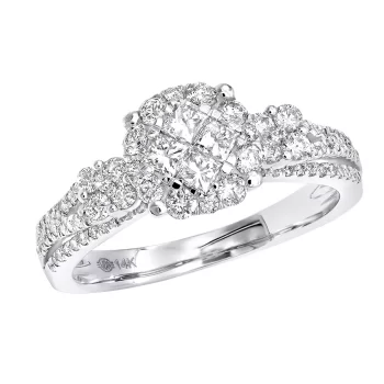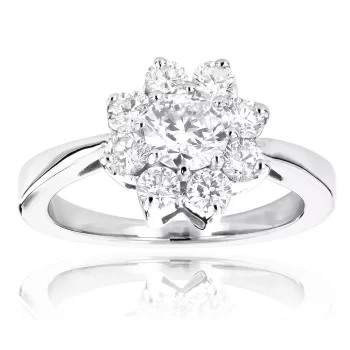 Ladies Diamond Cluster Rings: 14K Gold Diamond Flower Ring 1.2ct