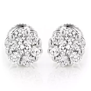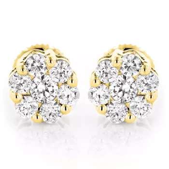 Round Diamond Stud Earrings 14K Gold 0.76ct Pave Cluster Design