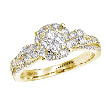 1 Carat Princess & Round Diamond Dream Engagement Ring 14K Gold