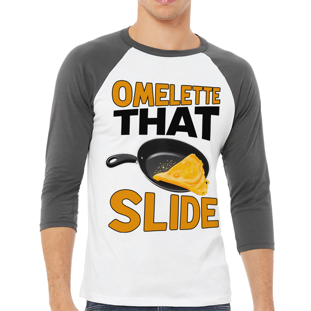 Omelette That Slide Baseball T-Shirt – Breakfast Graphic 3/4 Sleeve – Wordplay Gift Raglan Jersey Shirt