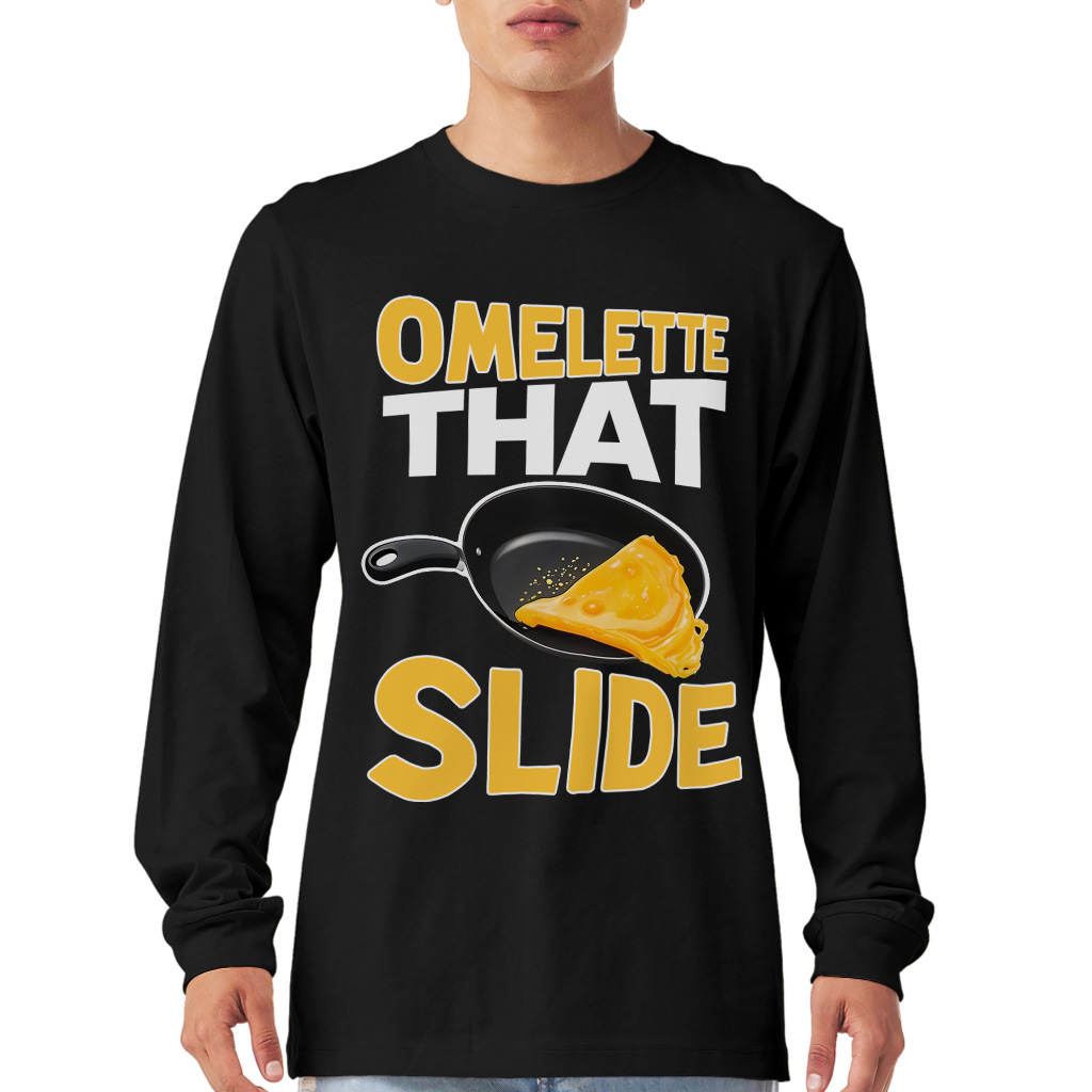 Omelette That Slide Long Sleeve T-Shirt – Breakfast Graphic T-Shirt – Wordplay Gift Basic Tee