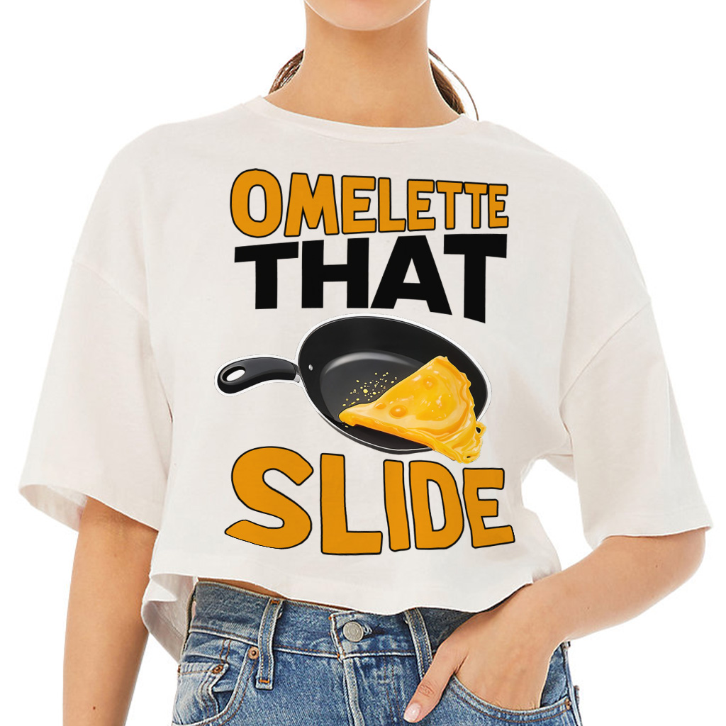 Omelette That Slide Cropped T-Shirt – Breakfast Graphic Trendy Tee – Wordplay Gift Women’s Basic T-Shirt