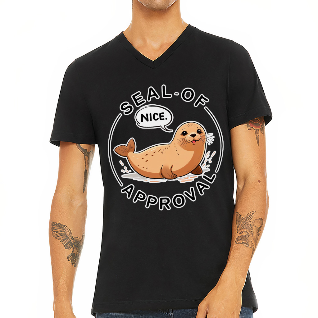 Seal Of Approval V-Neck T-Shirt – Cute Pun Basic T-Shirt – Seal Lover Tee