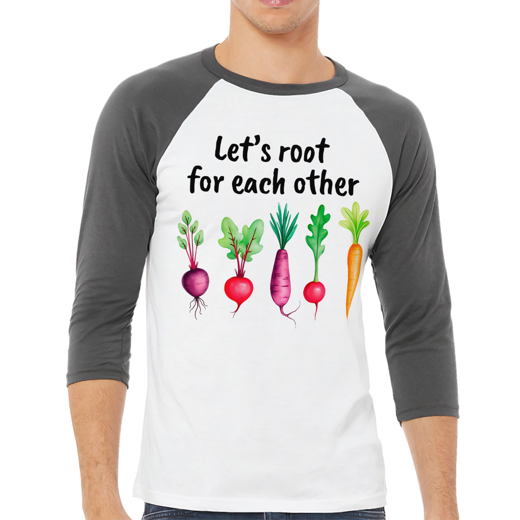 Let’s Root For Each Other Baseball T-Shirt – Spring 3/4 Sleeve – Uplifting Raglan Jersey Shirt