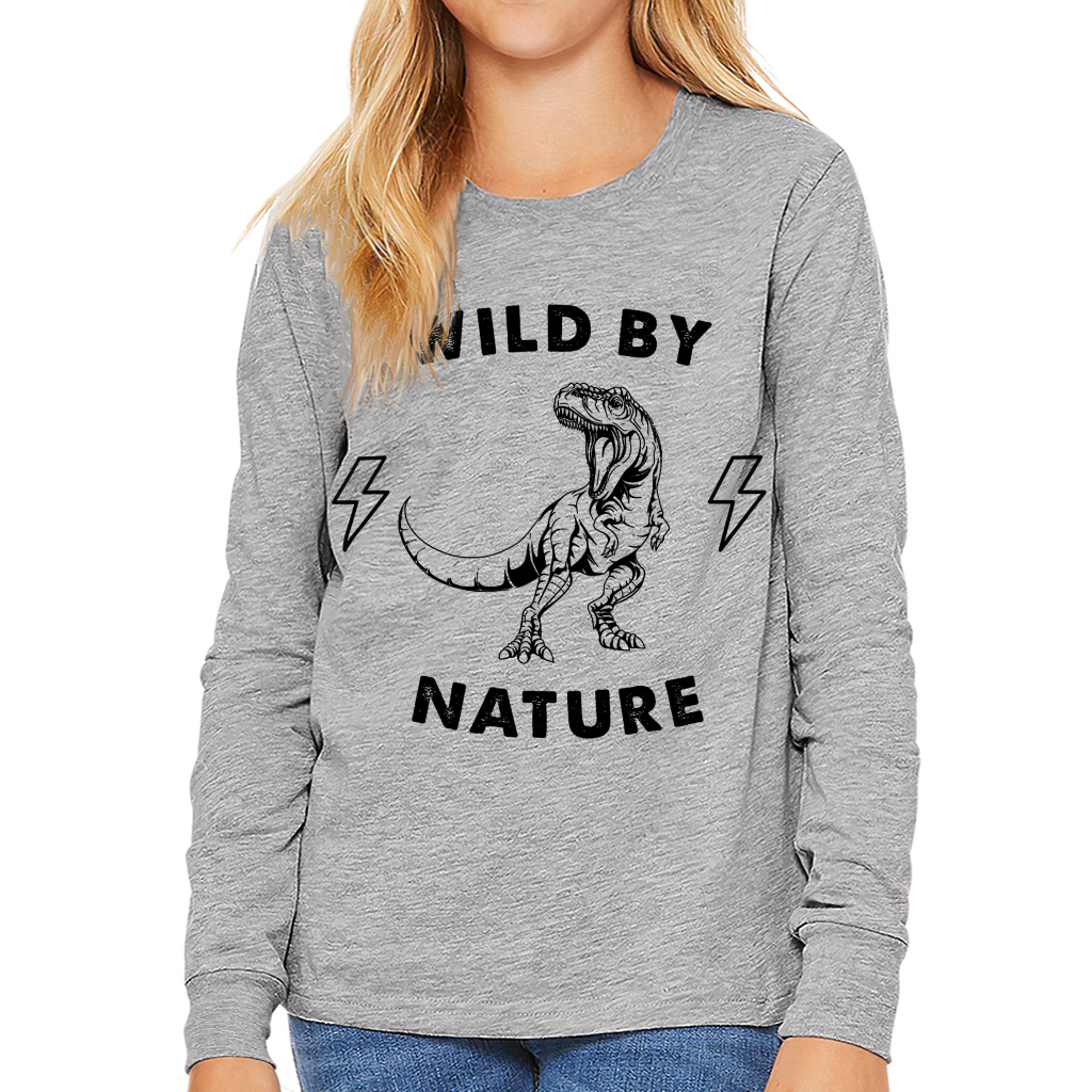 Wild by Nature Toddler Long Sleeve T-Shirt – Dinosaur Boy Girl Tee – T-Rex T-Shirt for Kids