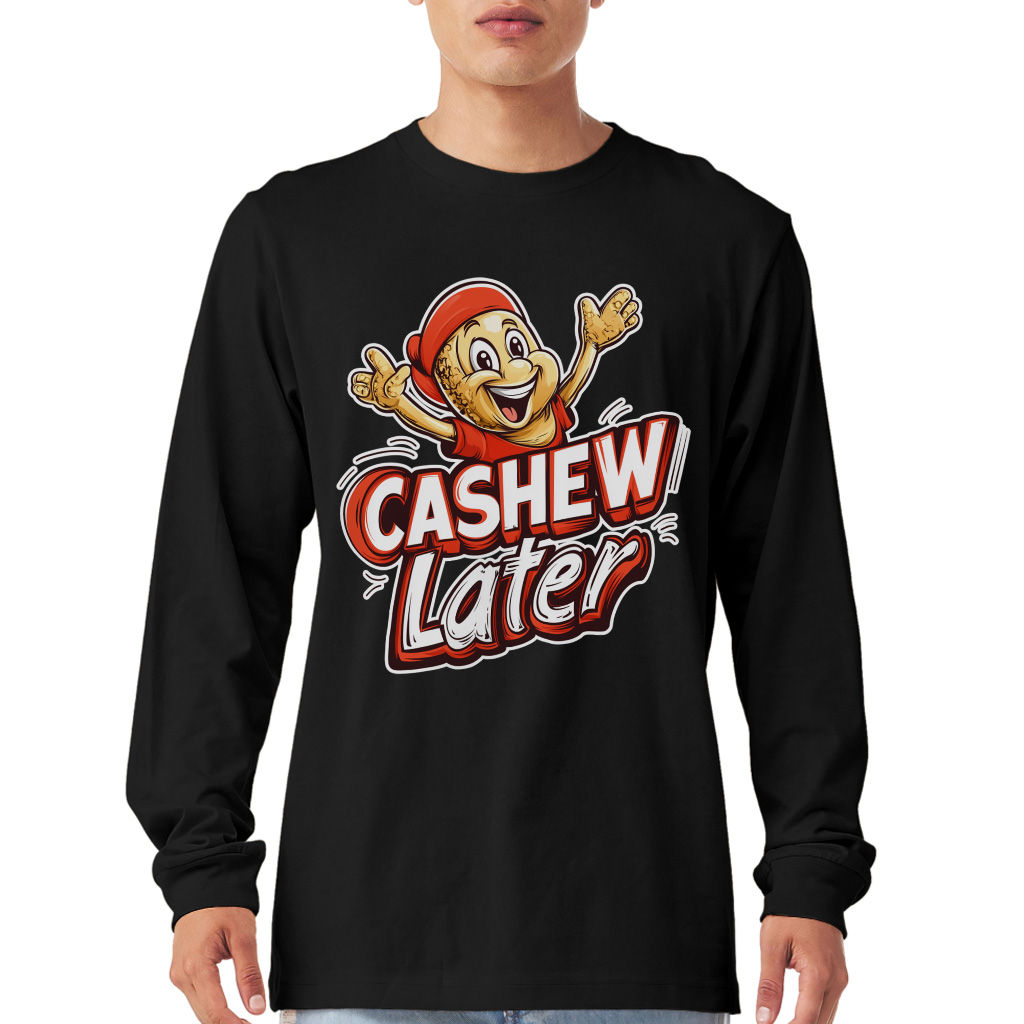 Cashew Later Long Sleeve T-Shirt – Funny Cashew T-Shirt – Snack Lover Basic Tee