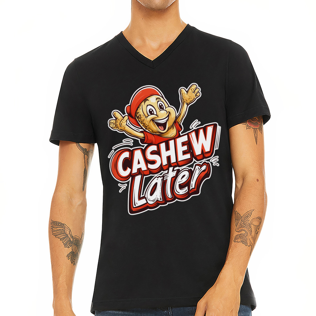 Cashew Later V-Neck T-Shirt – Snack Lover Basic T-Shirt – Funny Cashew Tee