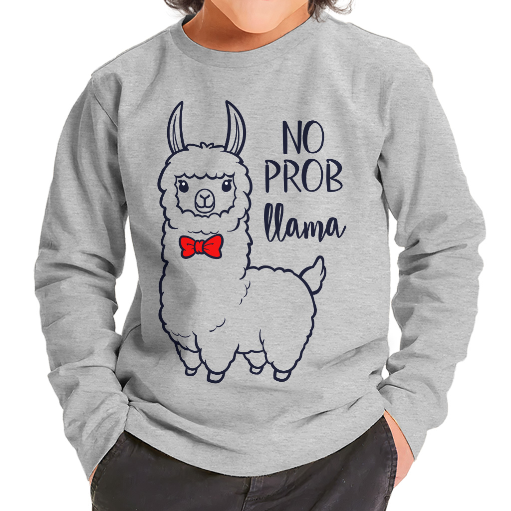 No Probllama Kids’ Long Sleeve T-Shirt – Funny Llama T-Shirt for Kids – Cute Animal Tee for Boys Girls