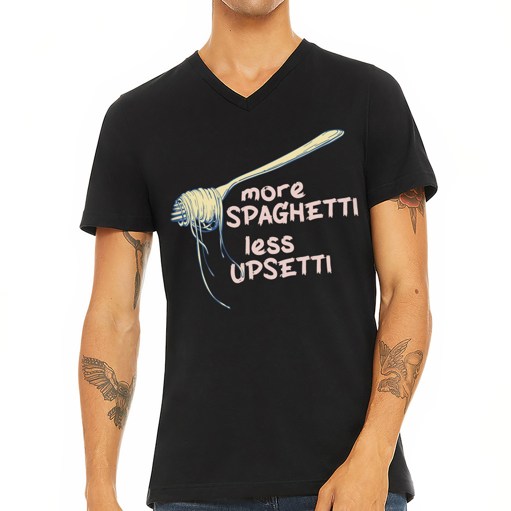 More Spaghetti Less Upsetti V-Neck T-Shirt – Retro Graphic Basic T-Shirt – Vintage Aesthetic Tee