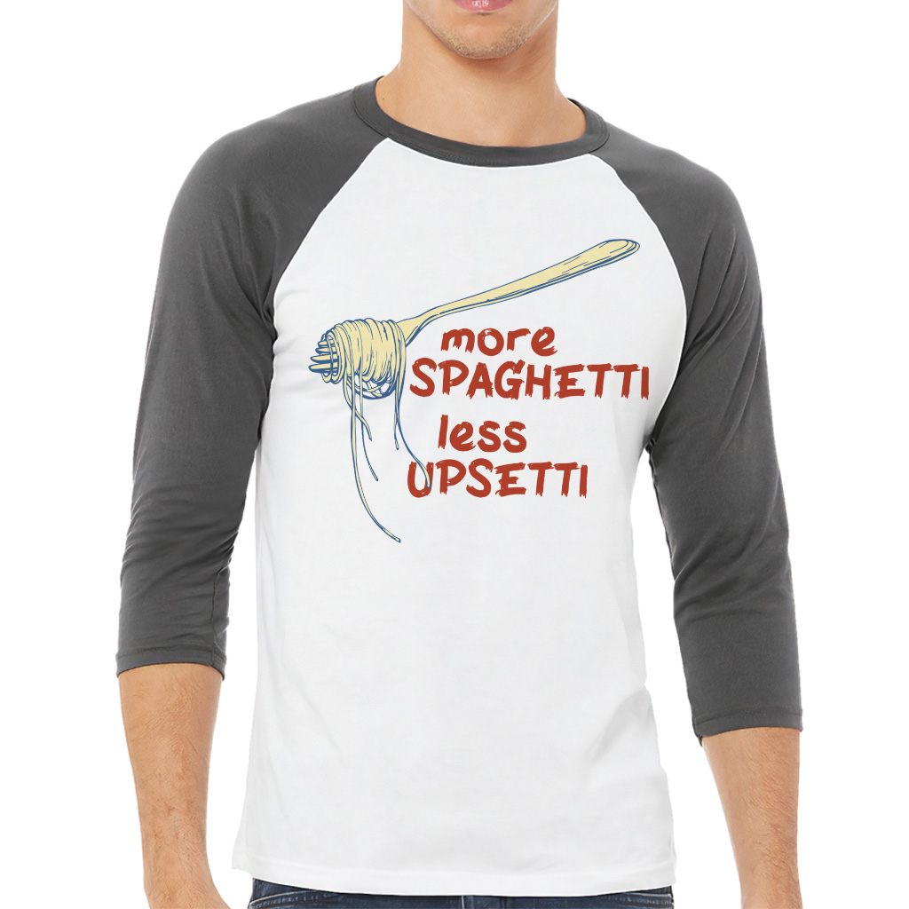 More Spaghetti Less Upsetti Baseball T-Shirt – Retro Graphic 3/4 Sleeve – Vintage Aesthetic Raglan Jersey Shirt