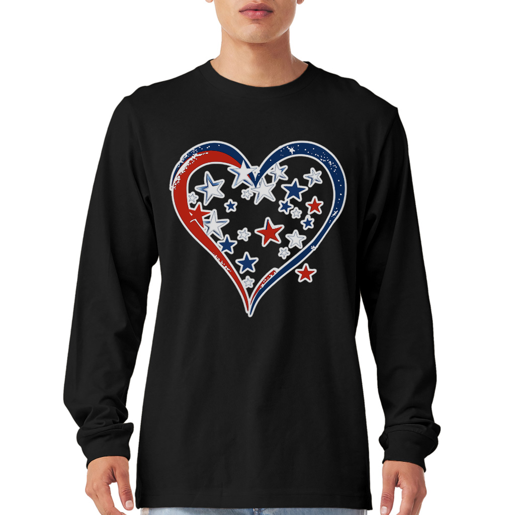 Red White Blue Heart Long Sleeve T-Shirt – USA Flag T-Shirt – Cute USA Basic Tee