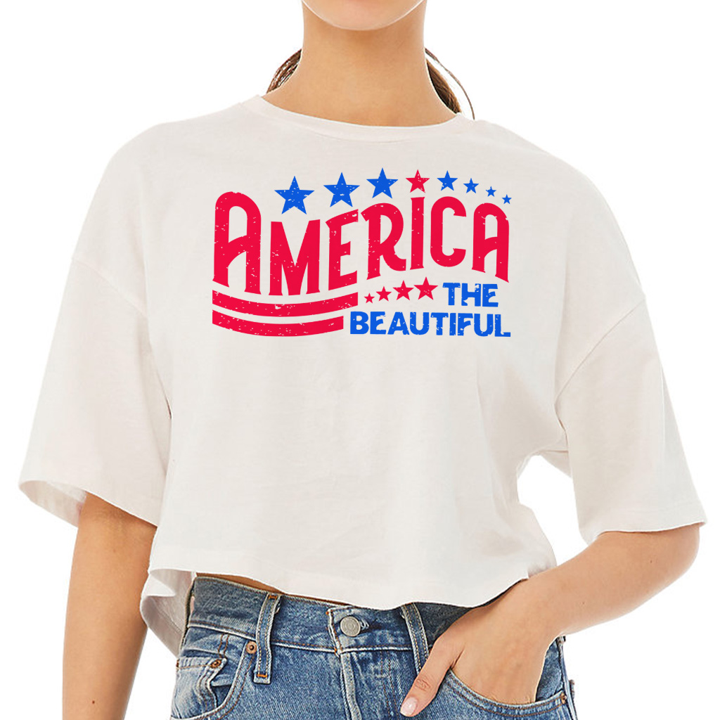 America The Beautiful Cropped T-Shirt – 4th Of July Trendy Tee – Retro Women’s Basic T-Shirt