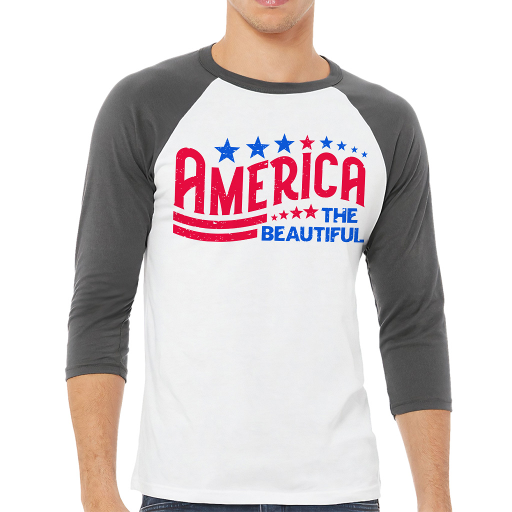 America The Beautiful Baseball T-Shirt – 4th Of July 3/4 Sleeve – Retro Raglan Jersey Shirt