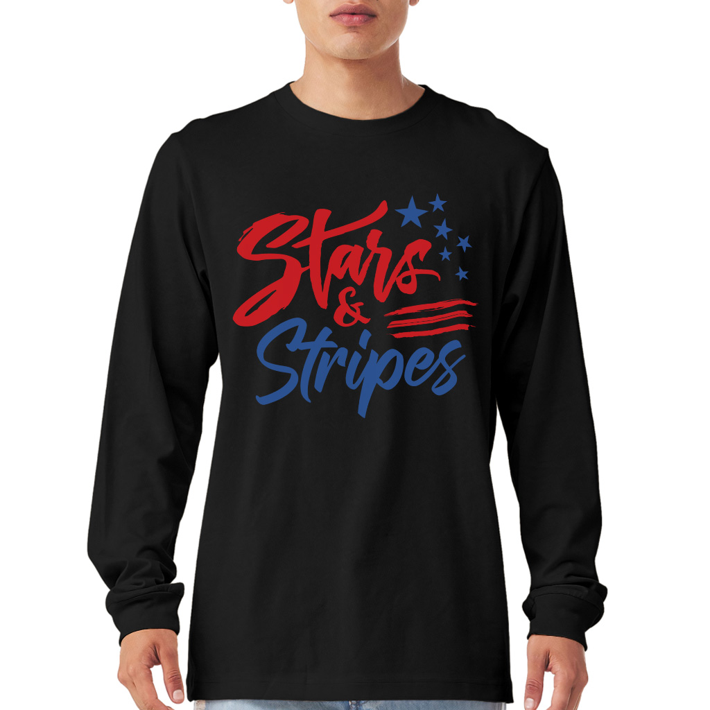 Stars and Stripes Long Sleeve T-Shirt – Minimalist Design T-Shirt – Memorial Day Basic Tee