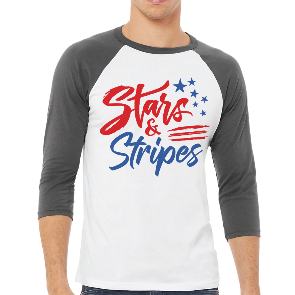 Stars and Stripes Baseball T-Shirt – Memorial Day 3/4 Sleeve – Minimalist Design Raglan Jersey Shirt