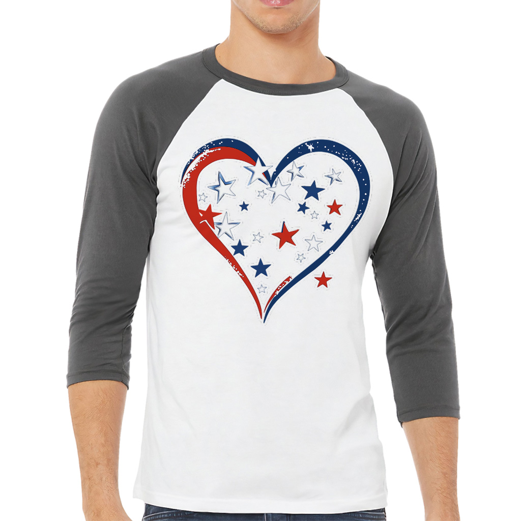 Red White Blue Heart Baseball T-Shirt – Cute USA 3/4 Sleeve – USA Flag Raglan Jersey Shirt