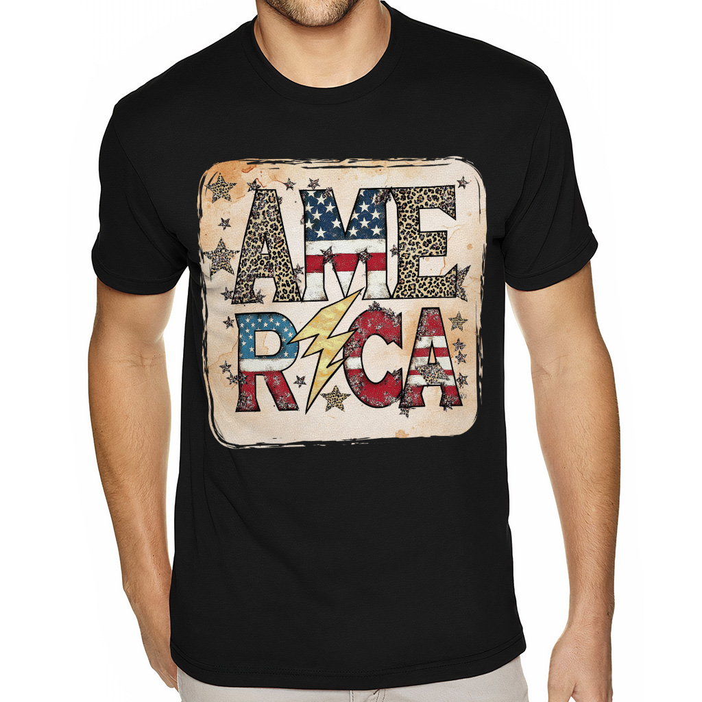 America Graphic T-Shirt – Retro Design Heavy Cotton Tee – Independence Day Shirt