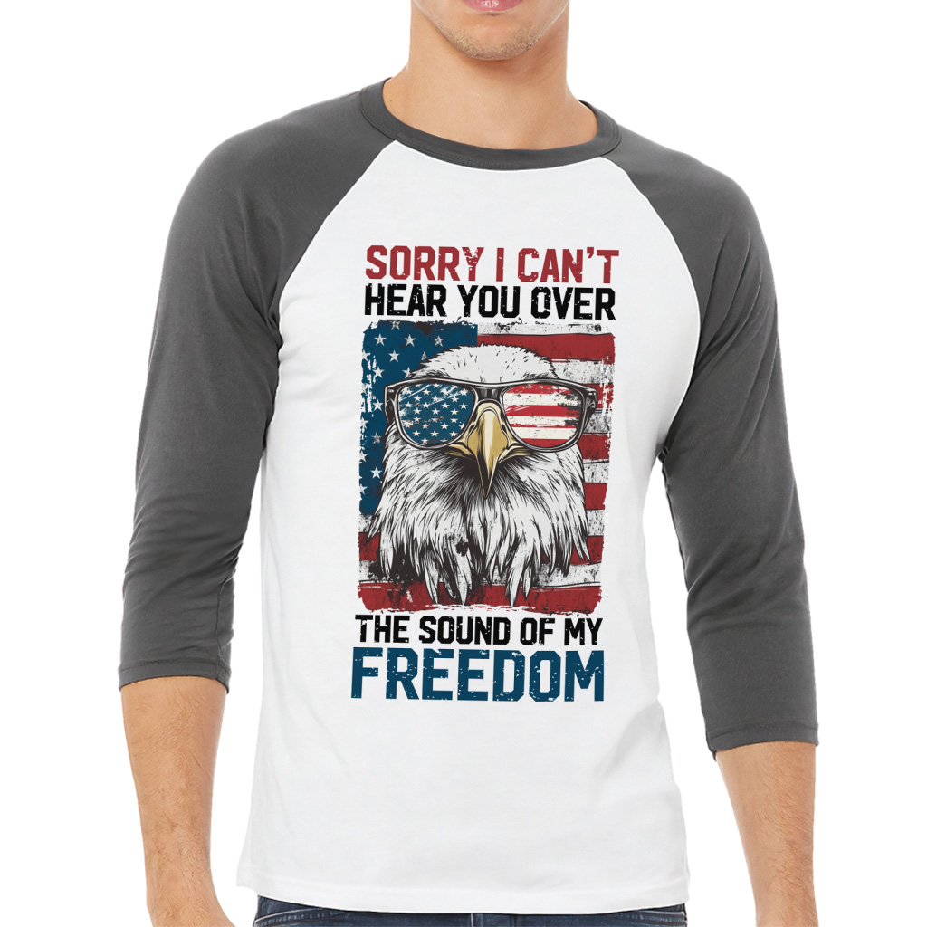 Can’t Hear You Over The Sound Of My Freedom Baseball T-Shirt – American Flag 3/4 Sleeve – Cool Eagle Raglan Jersey Shirt