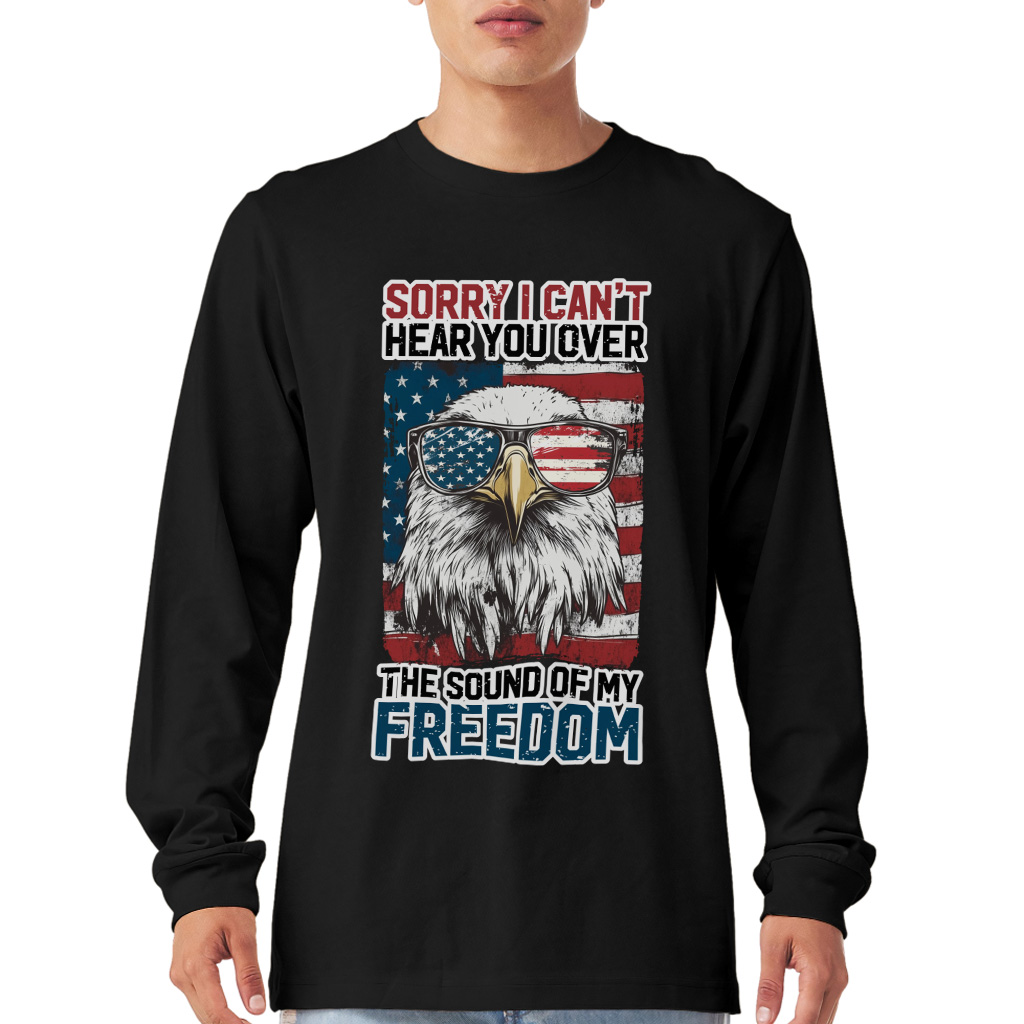 Can’t Hear You Over The Sound Of My Freedom Long Sleeve T-Shirt – Cool Eagle T-Shirt – American Flag Basic Tee