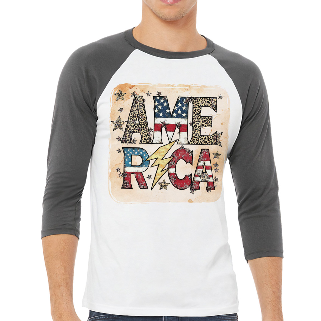 America Graphic Baseball T-Shirt – Independence Day 3/4 Sleeve – Retro Design Raglan Jersey Shirt