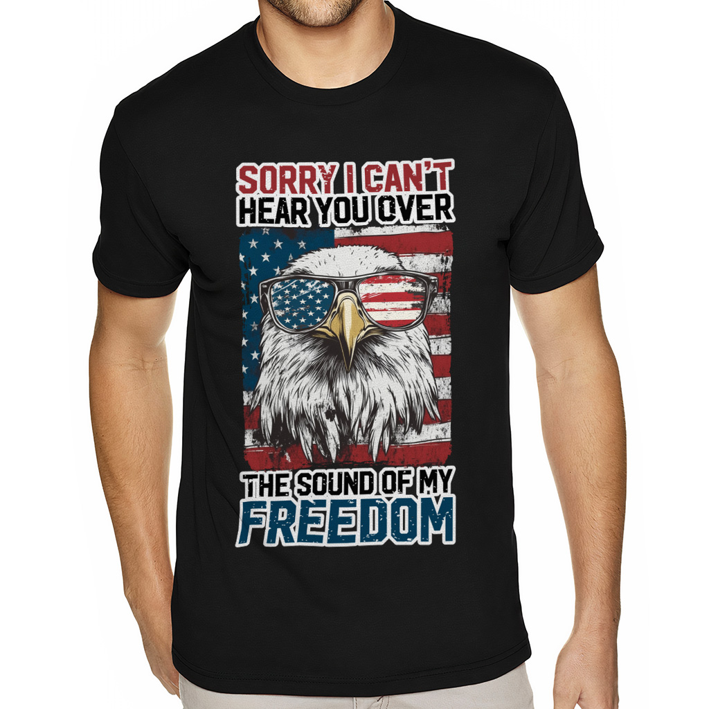 Can’t Hear You Over The Sound Of My Freedom T-Shirt – American Flag Heavy Cotton Tee – Cool Eagle Shirt