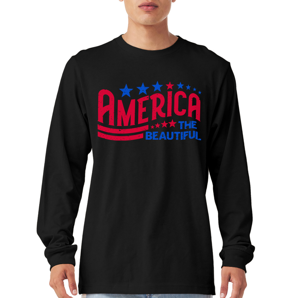 America The Beautiful Long Sleeve T-Shirt – Retro T-Shirt – 4th Of July Basic Tee