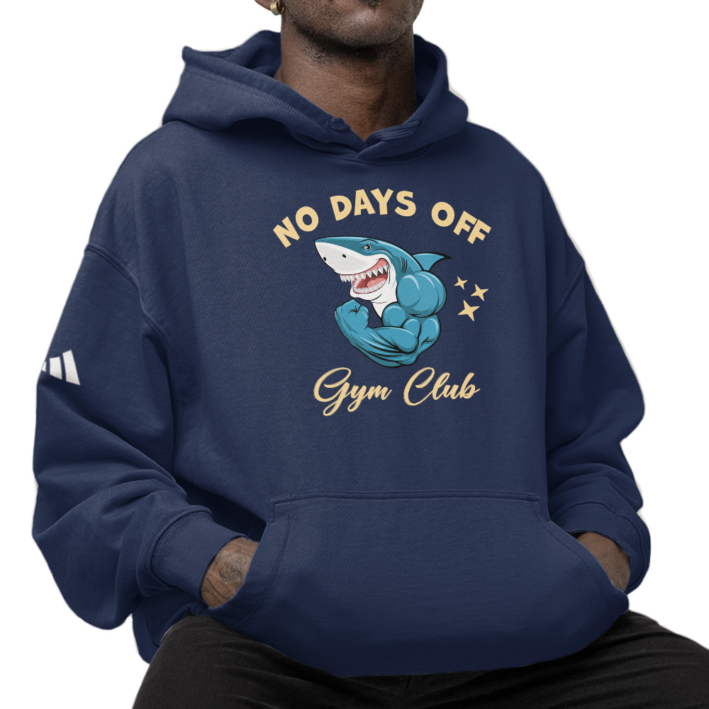 No Days Off adidas Hoodie – Muscular Shark Unisex Fleece Hoodie – Fitness Motivation Hooded Sweatshirt