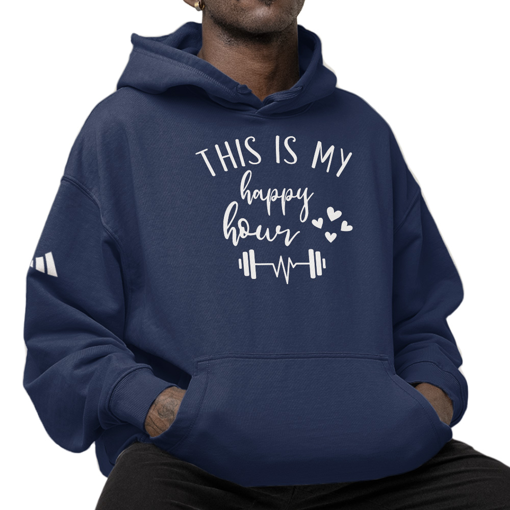 This Is My Happy Hour adidas Hoodie – Workout Gift Unisex Fleece Hoodie – Gym Design Hooded Sweatshirt
