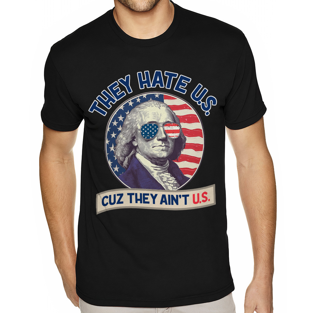 They Hate Us Cuz They Ain’t Us T-Shirt – George Washington Heavy Cotton Tee – Patriotic Celebration Shirt