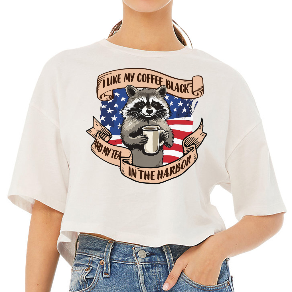 Tea in the Harbor Cropped T-Shirt – Cool Quote Trendy Tee – Funny Raccoon Women’s Basic T-Shirt