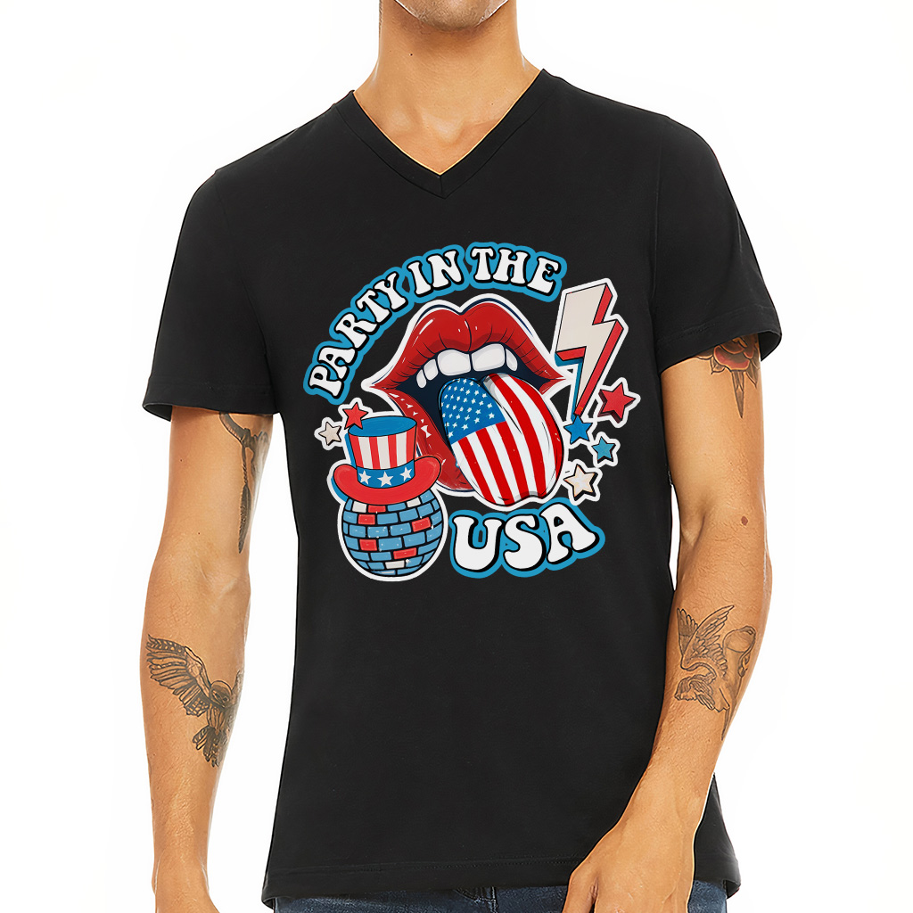 Party in The USA V-Neck T-Shirt – Retro Graphic Basic T-Shirt – Trendy Usa Tee