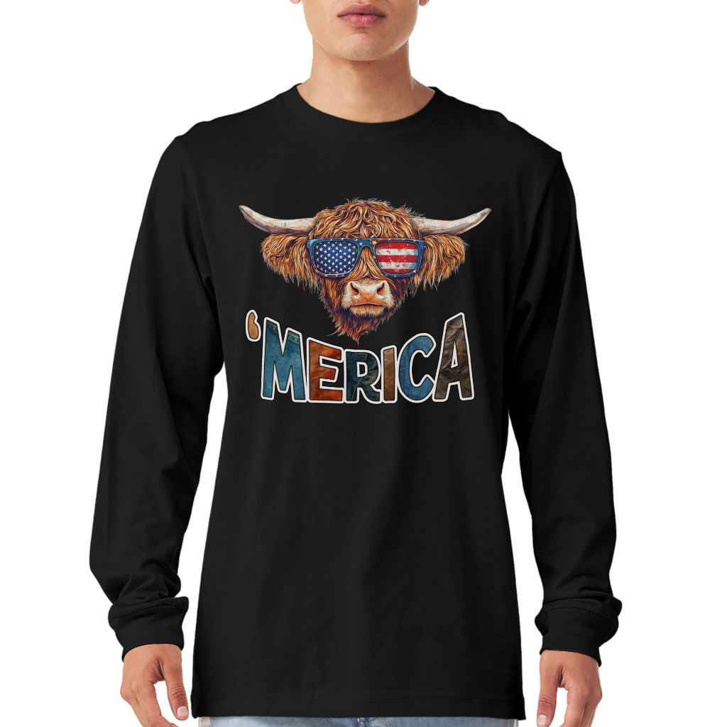 Highland Cow Long Sleeve T-Shirt – Cool Design T-Shirt – Merica Basic Tee