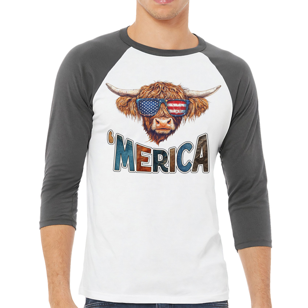 Highland Cow Baseball T-Shirt – Cool Design 3/4 Sleeve – Merica Raglan Jersey Shirt
